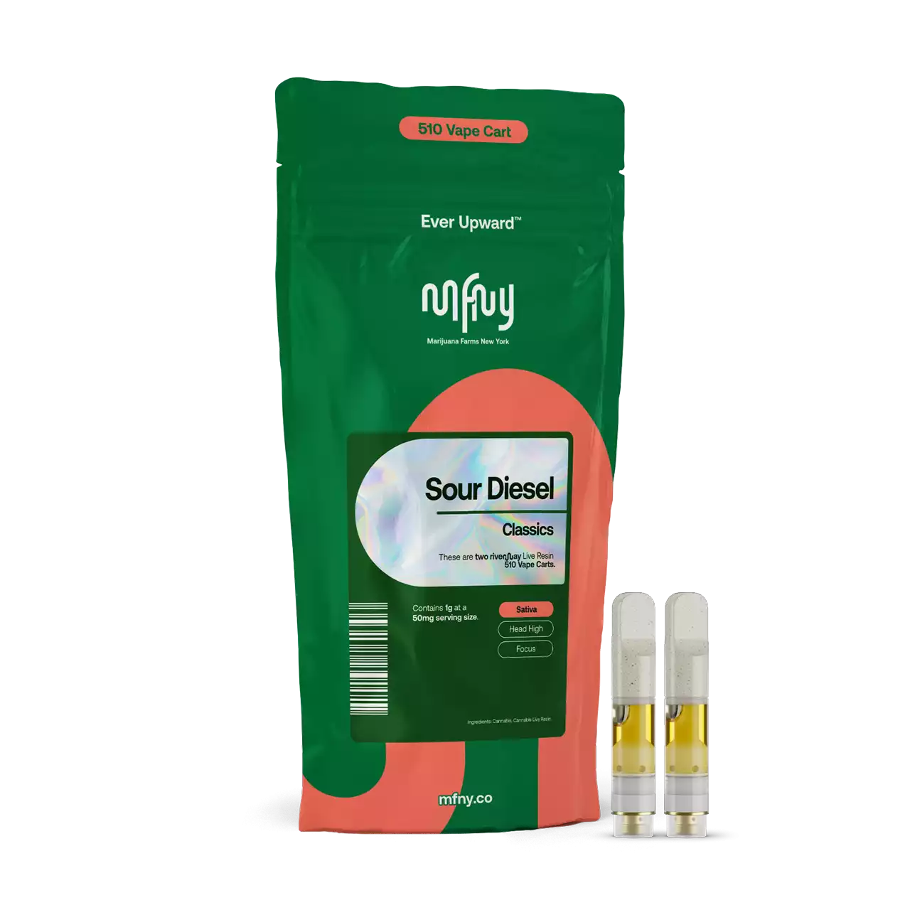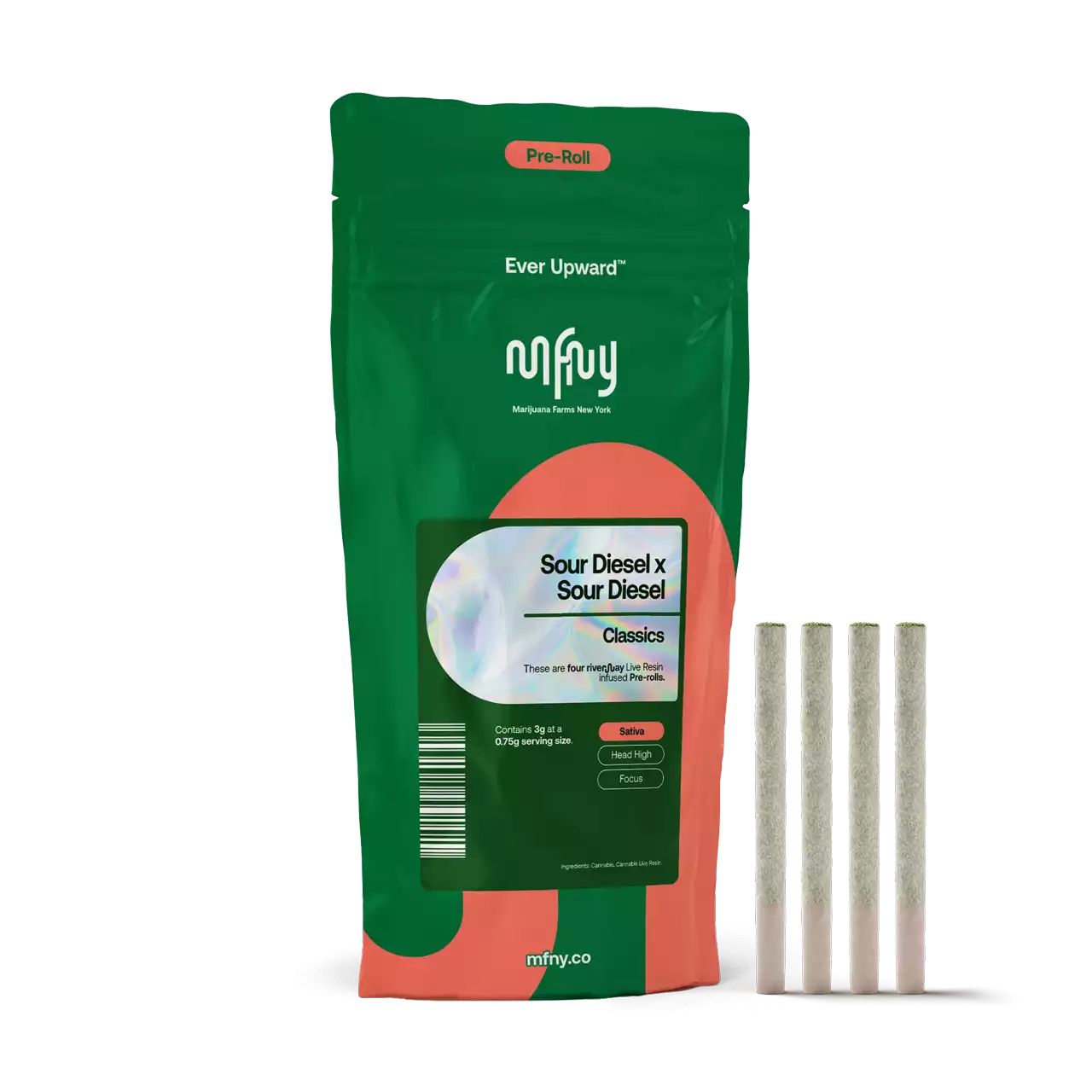On the first inhale, MFNY’s Sour Diesel hits the palate with deep diesel fuel and skunk before opening into a sour cream exhale. Its intoxicating nose famously fills a room even in the smallest amounts.